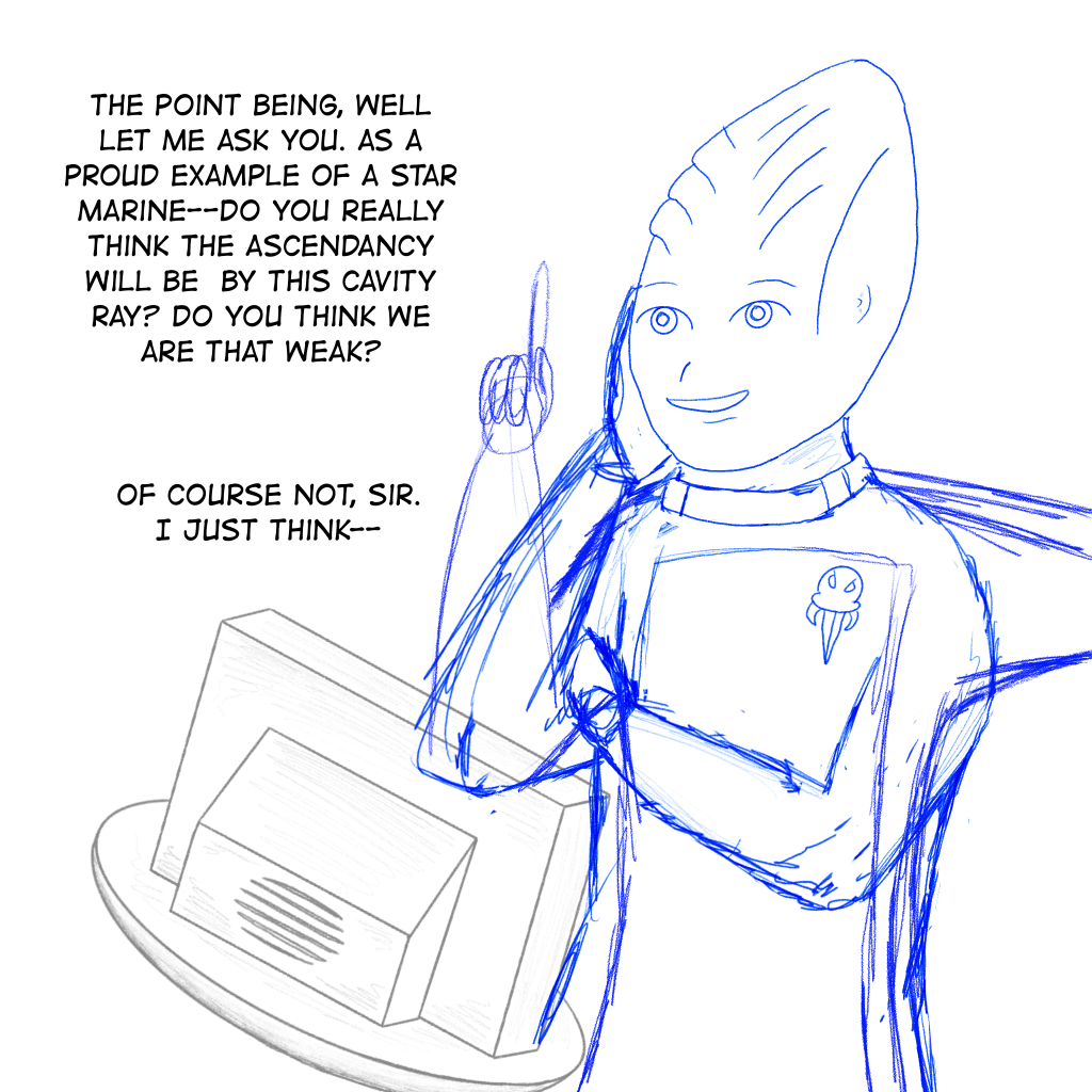 What came next? Well, RX eventually joined the space rebellion and chose to fight against the Star Ascendancy he once served. Space adventures ensued filled with aliens, jokes, and visits to a restaurant called Star Taco (at least, that’s what I had in my head).